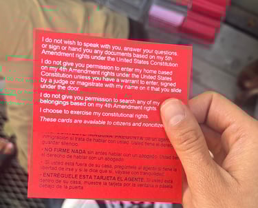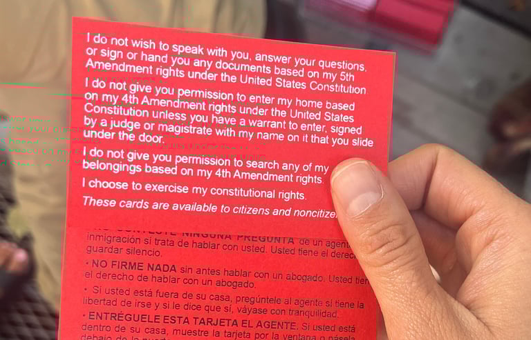 We set out to create a timely piece that reflects the political moment we’re living in, and the red card — a small, wallet-size card that outlines constitutional rights intended to be read by immigrants during encounters with law enforcement — felt like a tangible object that speaks volumes about the current climate in the U.S.